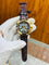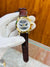 The strap is brown leather with a crocodile or alligator-style embossing.